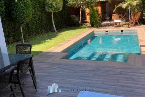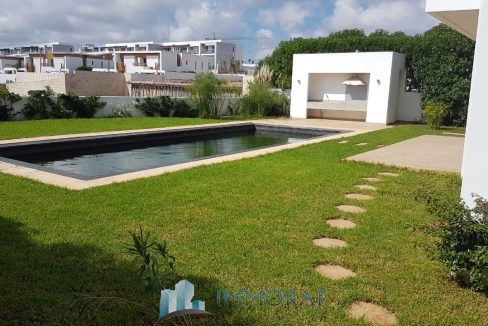 Villa de haut standing récente, située dans une résidence fermée très calme à Bouskoura . Elle se compose d’un double salon, d’un coin cheminée ,une…